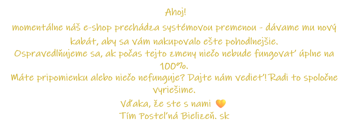 Vitajte v mieste, kde sa začína skutočný odpočinok. Posteľná bielizeň a bytový textil premení vašu spálňu na oázu pokoja, detskú izbu v ríši snov a obývaciu izbu na domov plný tepla.