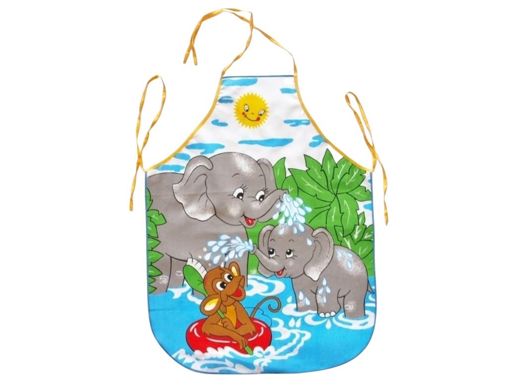 Dětská zástěra s motivem slonů – 64×50 cm, 100% bavlna