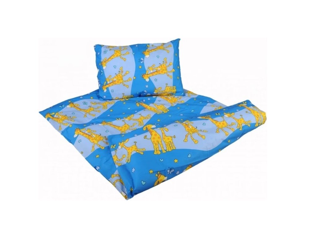 Povlečení je bavlněné - krepové, je zaručena stálobarevnost a také rozměrová stálost povlečení. Povlečení má zdravotní certifikát. Skládá se z povlečení polštáře a peřiny na malou postýlku. Má modrou barvu a je vhodné jej kombinovat s modrým, žlutým nebo oranžovým prostěradlem.