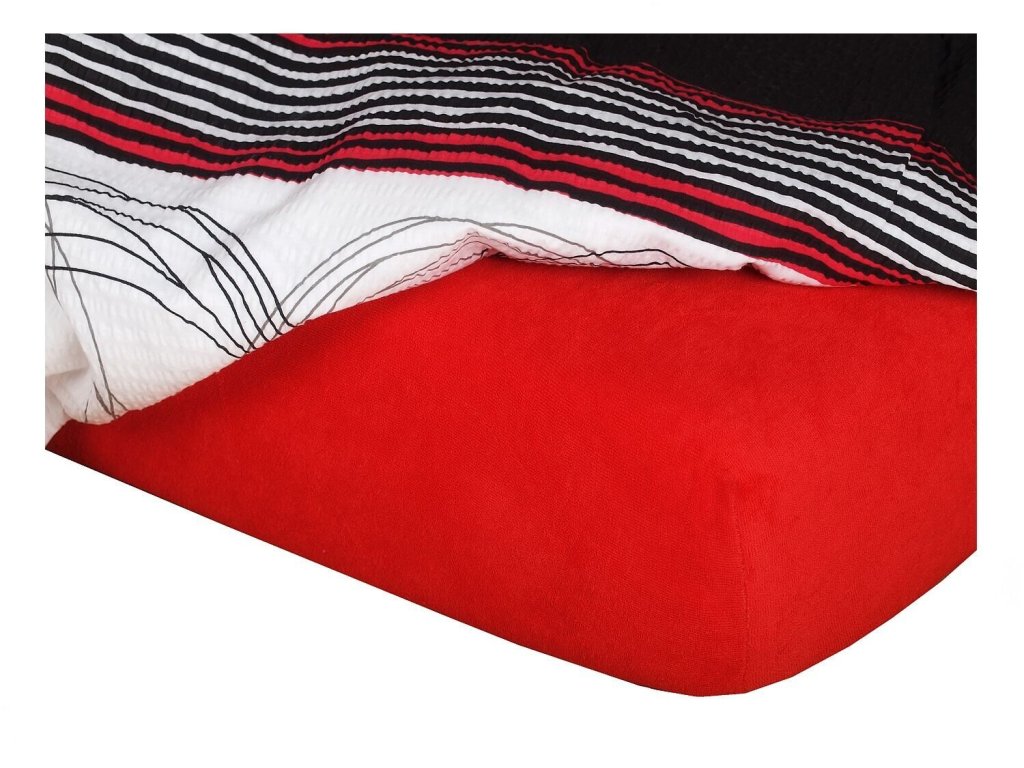 Červené napínací froté prostěradlo je vyrobeno z kvalitní směsi 80 % česané bavlny a 20 % polyesteru. Tento materiál je elastický, prodyšný, rozměrově stálý a velmi příjemný na dotek. Jemná froté smyčka zajišťuje měkkost a pohodlí při každodenním používání. Vhodné pro celoroční použití.