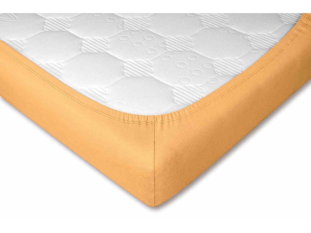 Napínací jersey prostěradlo v okrově žluté barvě je ušito z kvalitní směsi 95 % česané bavlny a 5 % elastanu. Tato kombinace zajišťuje vysokou pružnost, rozměrovou stálost a dokonalé přilnutí k matraci. Hladký jersey materiál je příjemný na dotek a ideální pro celoroční použití.