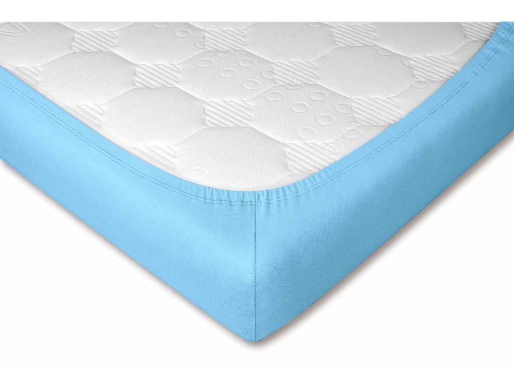 Světle modré jersey prostěradlo působí klidně a svěže. Skvěle se kombinuje s bílým, tmavě modrým nebo šedým povlečením. Ideální volba do ložnice, dětského pokoje i penzionu.