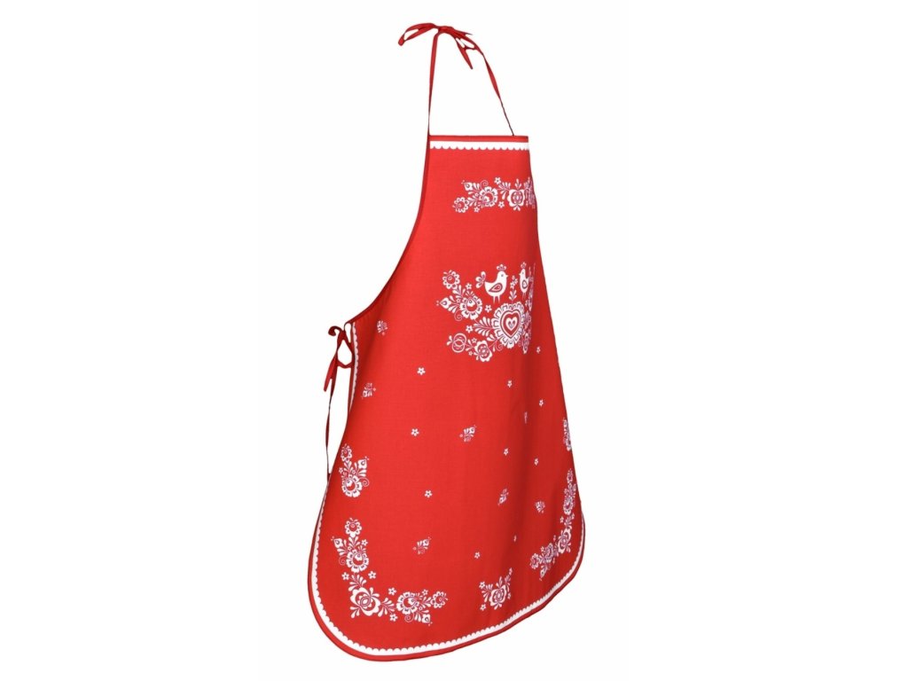 Kuchyňská zástěra Folk podklad červený 64x76 cm
