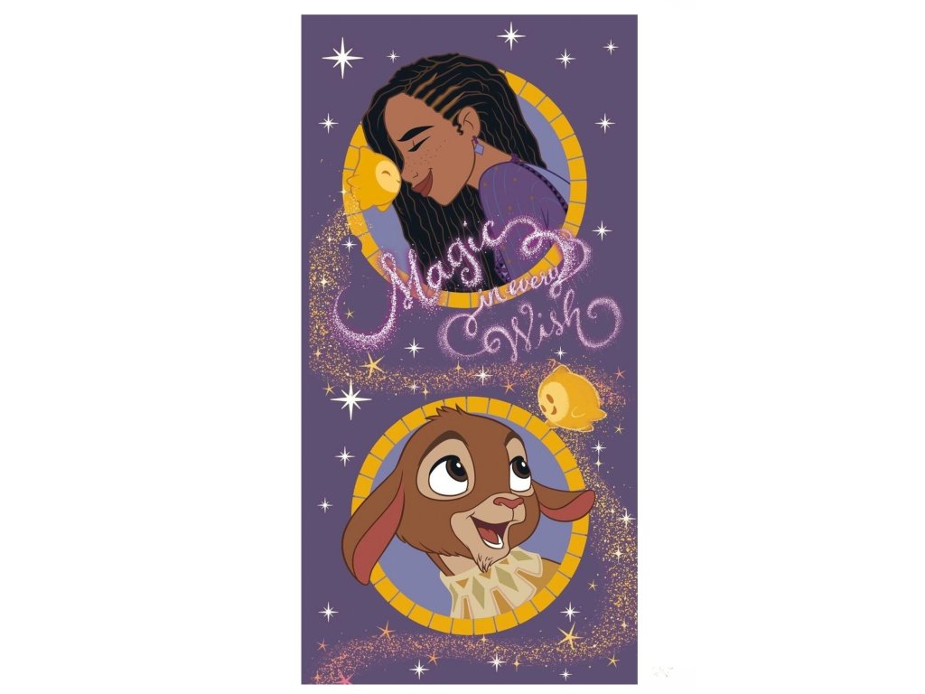 Kouzelná dětská osuška s motivem z Disney pohádky Wish. Rozměr 70×140 cm, jemné a savé bavlněné froté. Ideální pro malé snílky – do koupelny, na pláž i jako dárek plný magie.