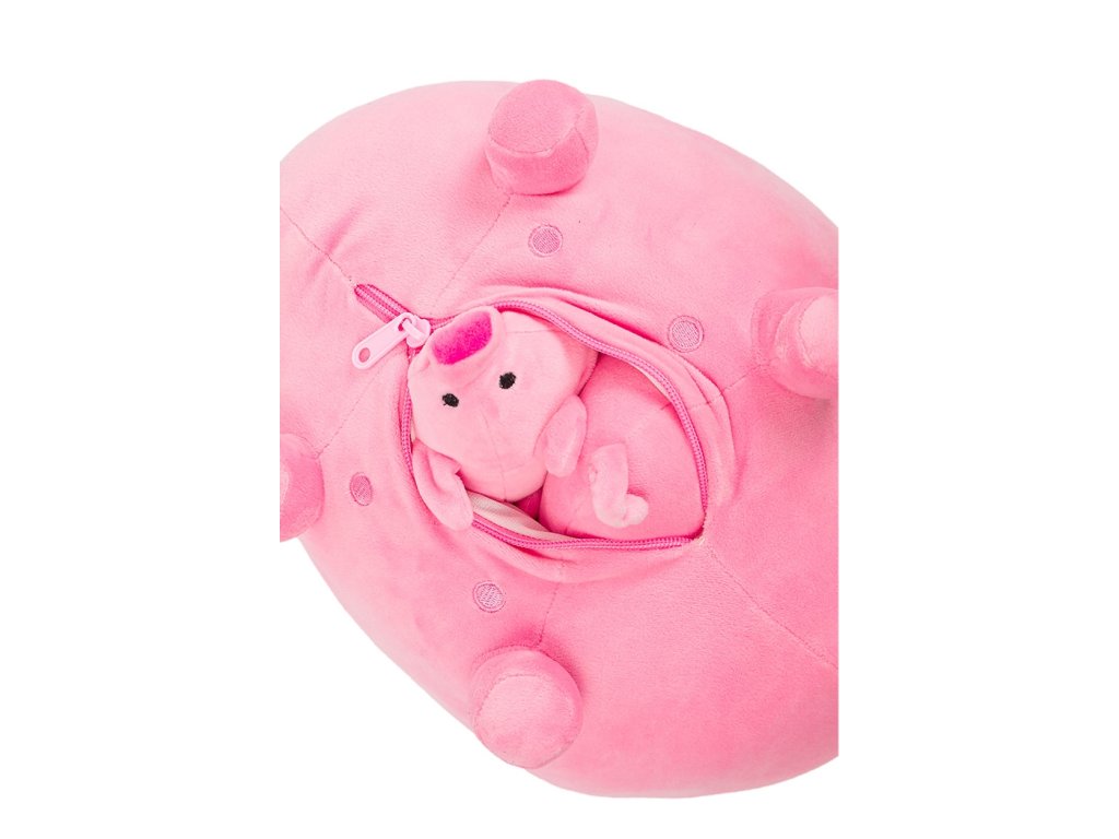 Roztomilý polštářek a hračka v jednom – Prasátko ukrývá dvě malá selátka ve svém bříšku. Vyrobeno z hebkého mikrospandexu, ideální pro děti i jako dekorace do pokojíčku.