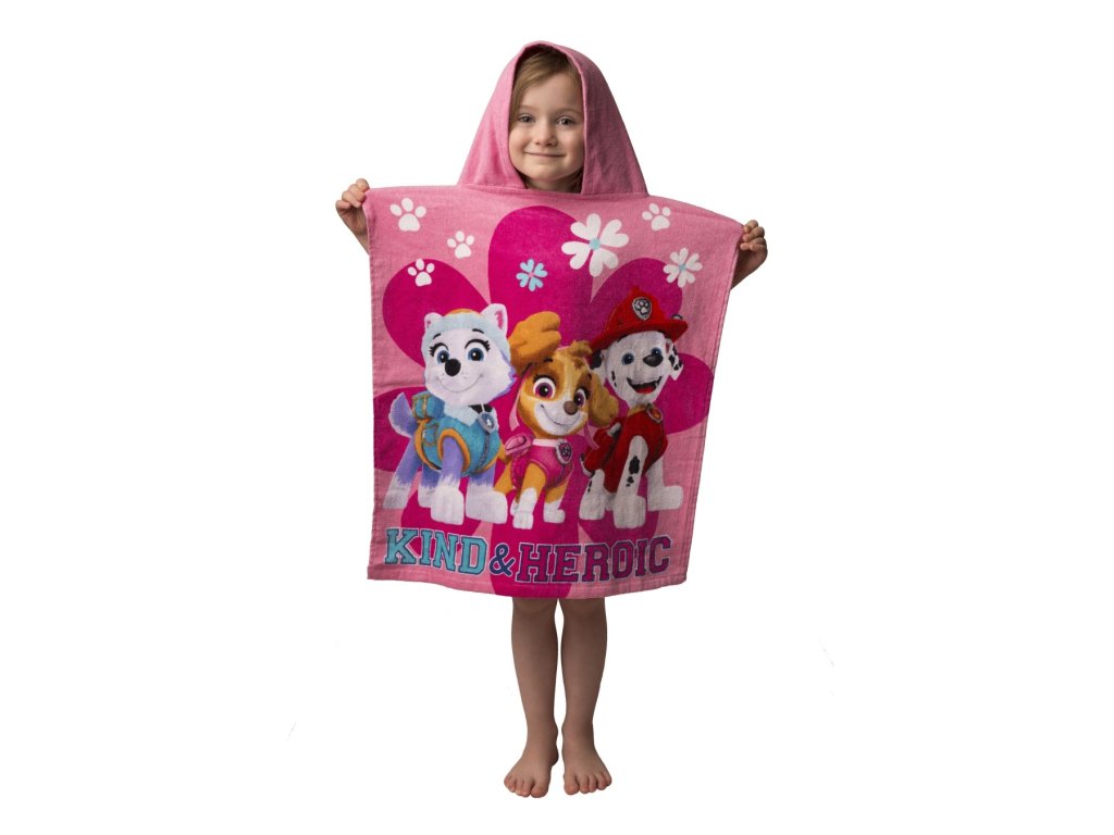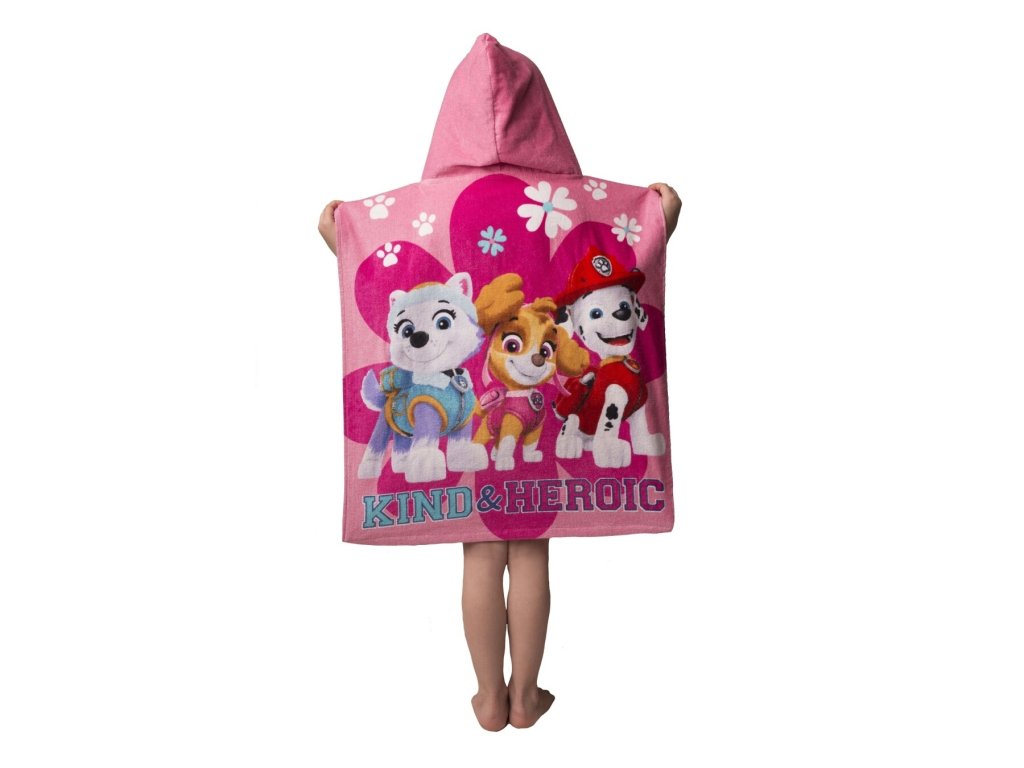 Přední stranu zdobí Everest, Skye a Marshall s nápisem 'KIND & HEROIC', zadní strana zobrazuje stejné postavy s tlapkami a srdíčky. Díky kapuci pončo krásně zahřeje a je praktické i stylové.