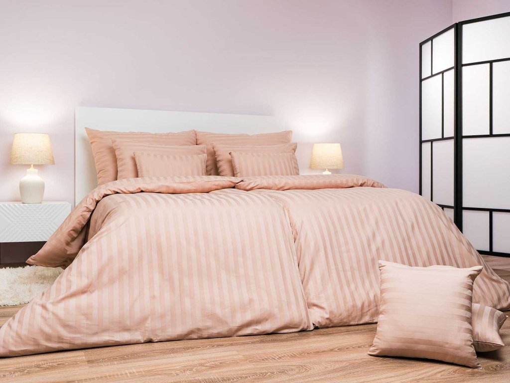 Povlečení atlas grádl béžový proužek 2 cm 200x200, 2x70x90 cm