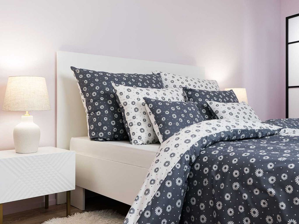 Elegantní ložní prádlo s jemným květinovým vzorem v kombinaci bílé a tmavě šedé barvy přinese do vaší ložnice kontrastní harmonii a nadčasový styl. Vzor Anežka bílá/tmavě šedá DUO je originálním oboustranným designem od českého výrobce DADKA VRACOV. Doporučujeme kombinovat s prostěradly v barvě bílá nebo tmavě šedá.