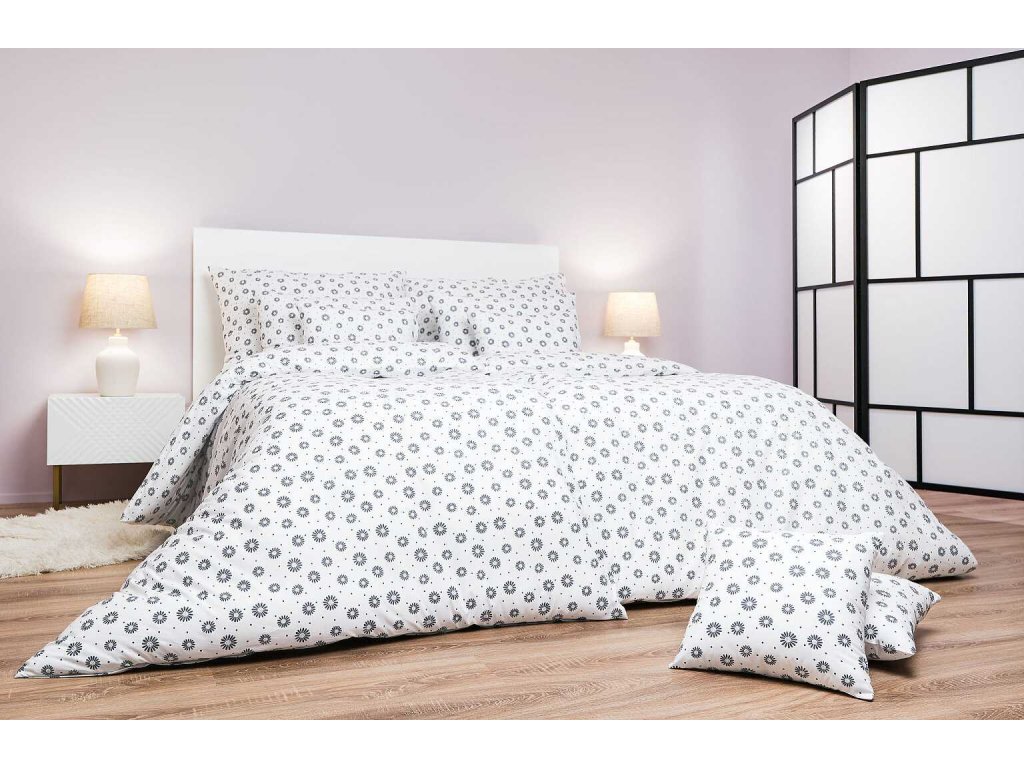 Komfortní ložní prádlo s jemným květinovým vzorem v tmavě šedé barvě na bílém podkladu přinese do vaší ložnice čistotu, kontrast a eleganci. Vzor Anežka tmavě šedá na bílém je exkluzivním designem z dílny českého výrobce DADKA VRACOV. Doporučujeme kombinovat s prostěradly v barvě bílá nebo tmavě šedá.