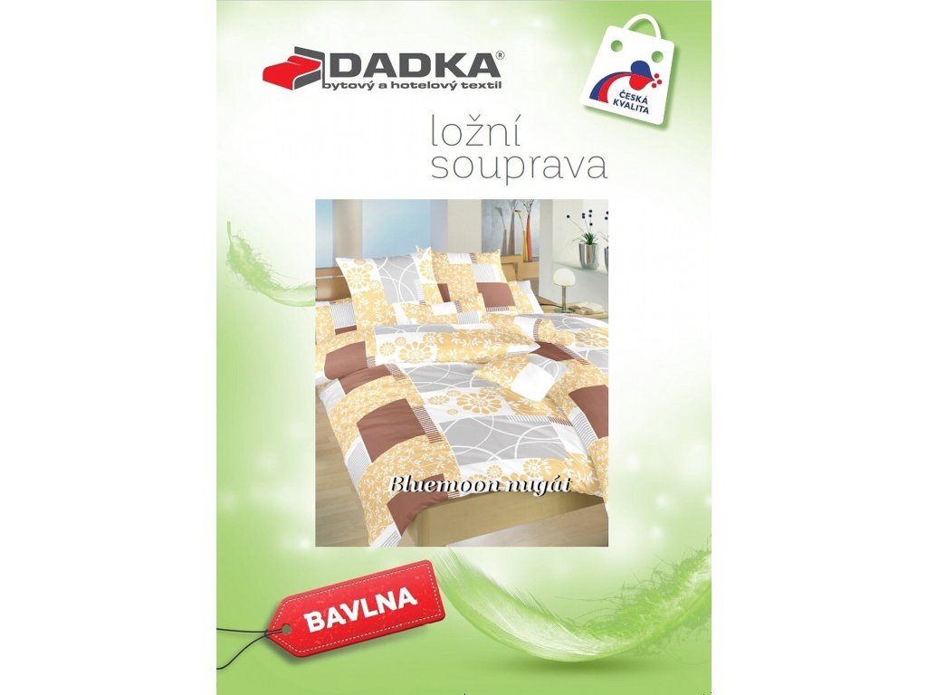 Stylové ložní prádlo Bluemoon nugát kombinuje květinové motivy s geometrickými prvky v odstínech nugátové, žluté, bílé a světle šedé. Tento moderní a zároveň elegantní design přináší do ložnice harmonii a teplý nádech. Povlečení doporučujeme kombinovat s prostěradly v barvě bílá, světle šedá, nugátová nebo okrová. Vyrobeno v České republice firmou DADKA VRACOV.