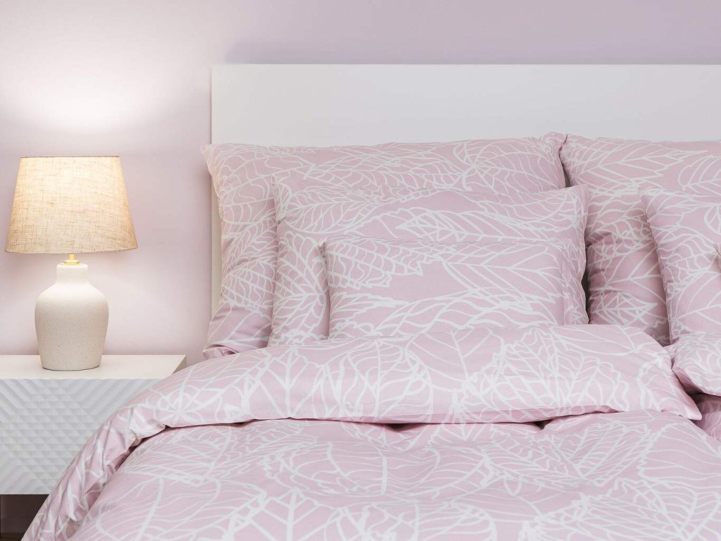 Elegantní bavlněné povlečení Max pudrový s jemným bílým listovým vzorem na pudrově růžovém podkladu vnese do vaší ložnice klid a jemnost. Doporučujeme kombinovat s prostěradly v barvě bílá nebo pudrová pro harmonický vzhled.
