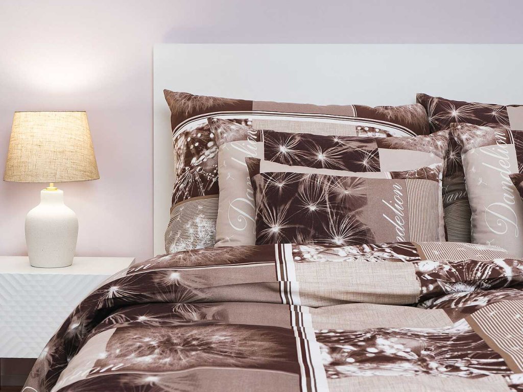 Moderní ložní prádlo Pampelišky 3D hnědé s realistickým motivem pampelišek v hnědých tónech přináší do ložnice přírodní klid a eleganci. Doporučujeme kombinovat s prostěradly v barvě béžová, tmavě hnědá nebo banánová. Vyrobeno v České republice firmou DADKA VRACOV.