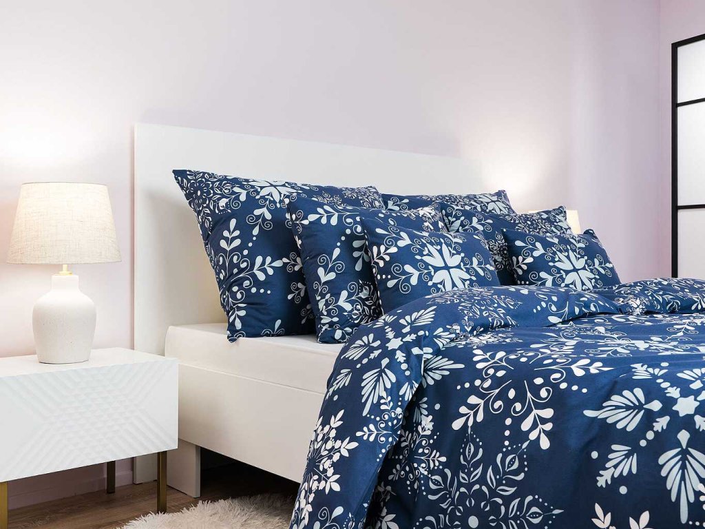Stylové ložní prádlo Snowflakes tmavě modré s motivem bílých sněhových vloček na tmavě modrém podkladu přináší do ložnice zimní atmosféru a elegantní kontrast. Nejlépe vynikne v kombinaci s prostěradlem v barvě bílá. Vyrobeno v České republice firmou DADKA VRACOV.