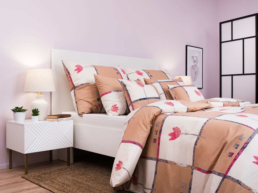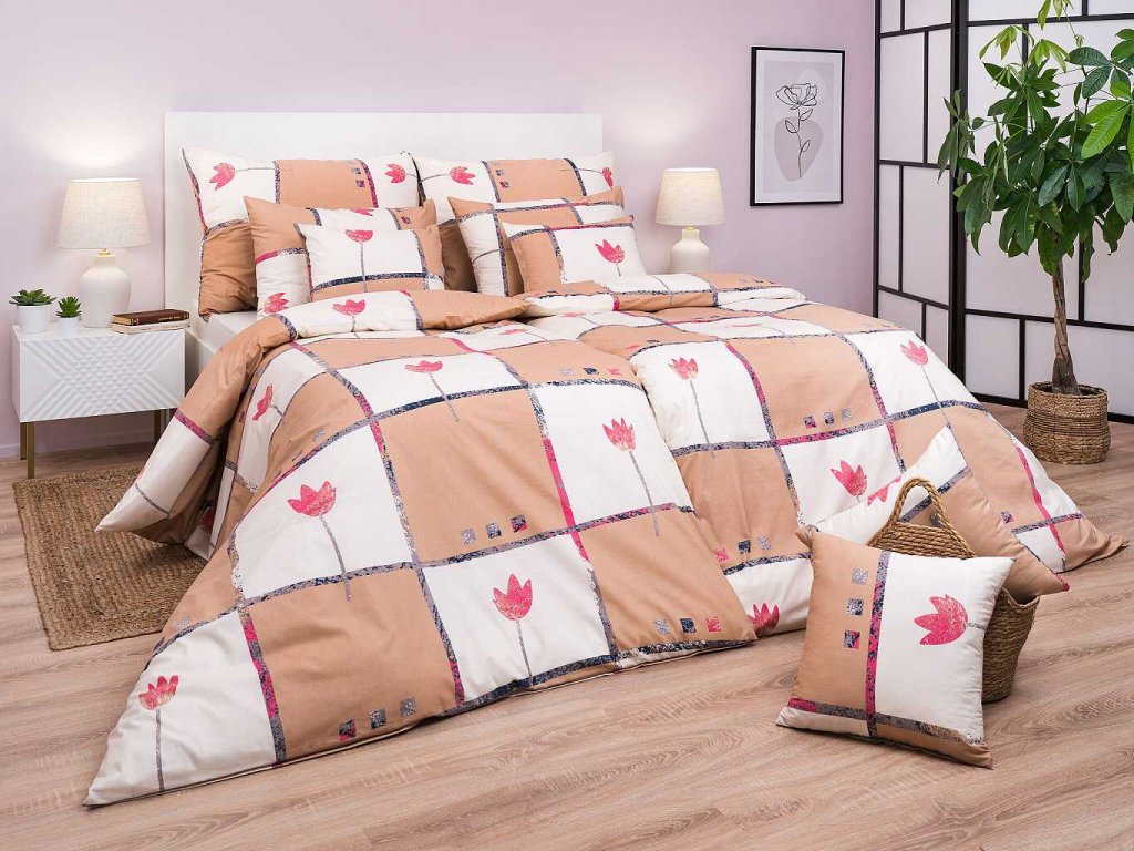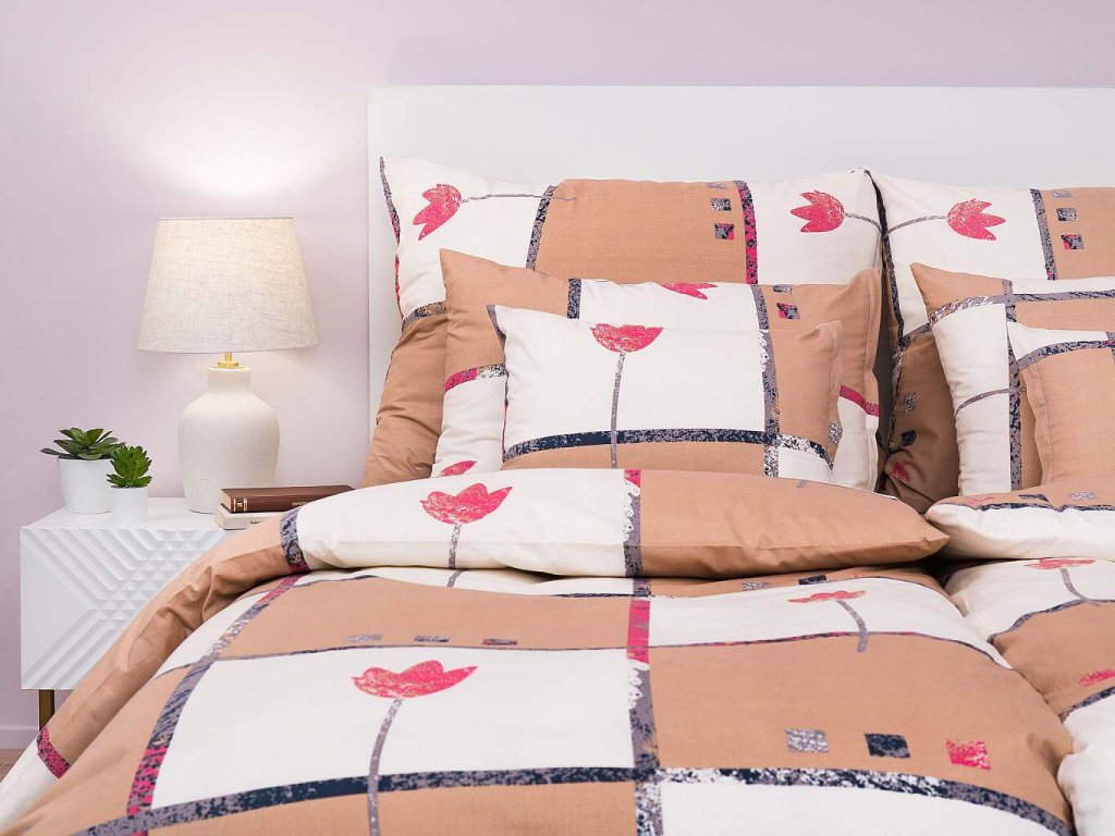 Povlečení bavlna Tulipán světle hnědý 140x200, 70x90 cm