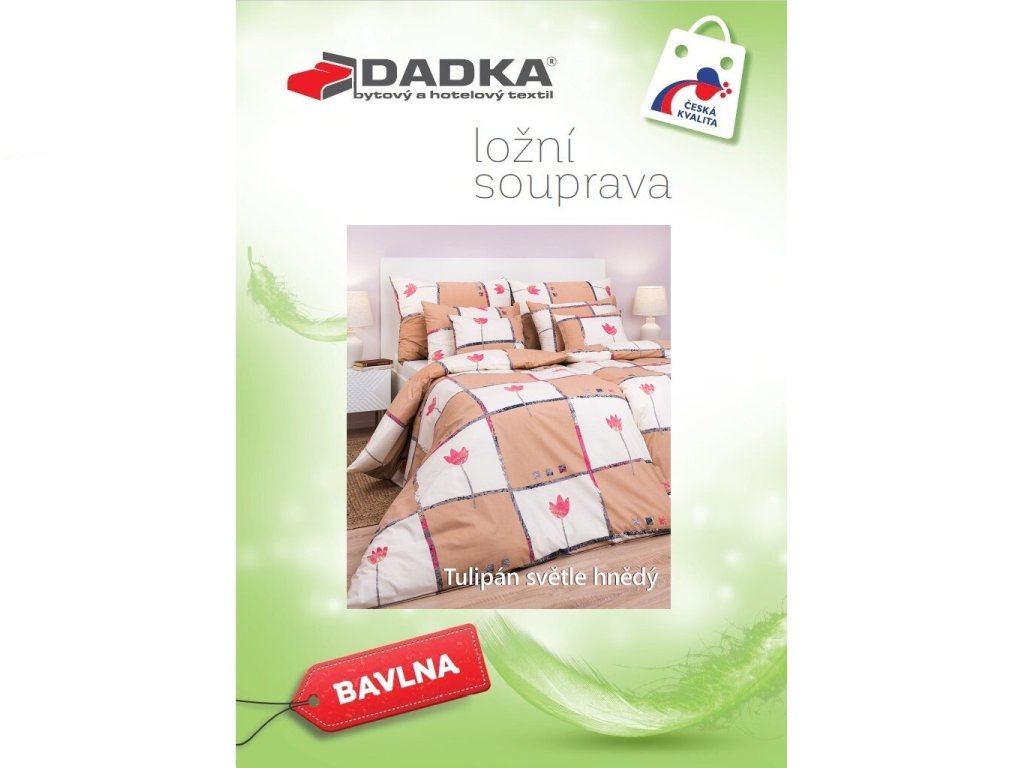 Stylové ložní prádlo Tulipán světle hnědý přináší do vaší ložnice klidnou a harmonickou atmosféru. Jemný motiv tulipánů v kombinaci světle hnědé a bílé barvy působí příjemně a vkusně. Doporučujeme kombinovat s prostěradly v barvě banán, opál, tmavě šedá nebo světle hnědá. Vyrobeno v České republice firmou DADKA VRACOV.