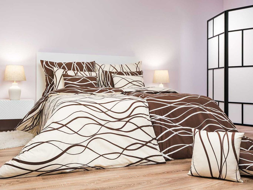 Povlečení bavlna Vlny banánové/hnědé DUO 140x240, 70x90 cm
