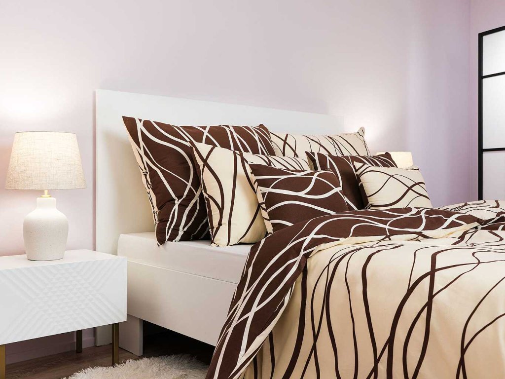 Povlečení bavlna Vlny banánové/hnědé DUO 200x200, 2x70x90 cm