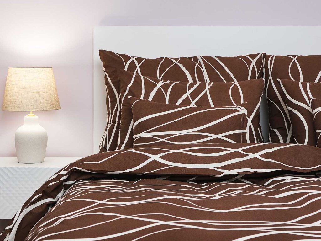 Elegantní ložní prádlo Vlny banánové na tmavě hnědém zaujme svým kontrastním designem – tmavě hnědý podklad s jemnými vlnkami v banánové barvě vytváří moderní a zároveň klidný vzhled. Povlečení doporučujeme kombinovat s prostěradly v barvě banánová nebo tmavě hnědá. Vyrobeno v České republice firmou DADKA VRACOV.