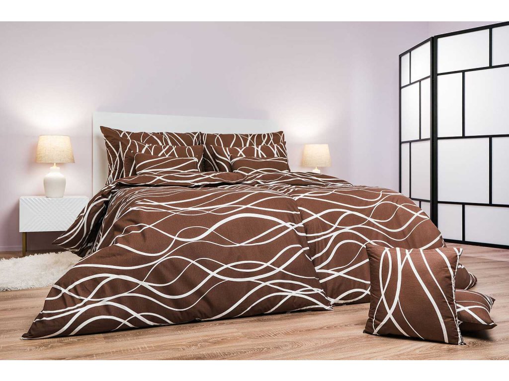 Povlečení bavlna Vlny banánové na tmavě hnědém 200x200, 2x70x90 cm