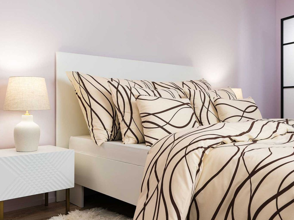 Elegantní ložní prádlo Vlny hnědé na banánovém zaujme svým jemným a přírodním vzhledem – banánový podklad s hnědými vlnkami vytváří klidnou a harmonickou atmosféru. Povlečení doporučujeme kombinovat s prostěradly v barvě banánová nebo tmavě hnědá. Vyrobeno v České republice firmou DADKA VRACOV.