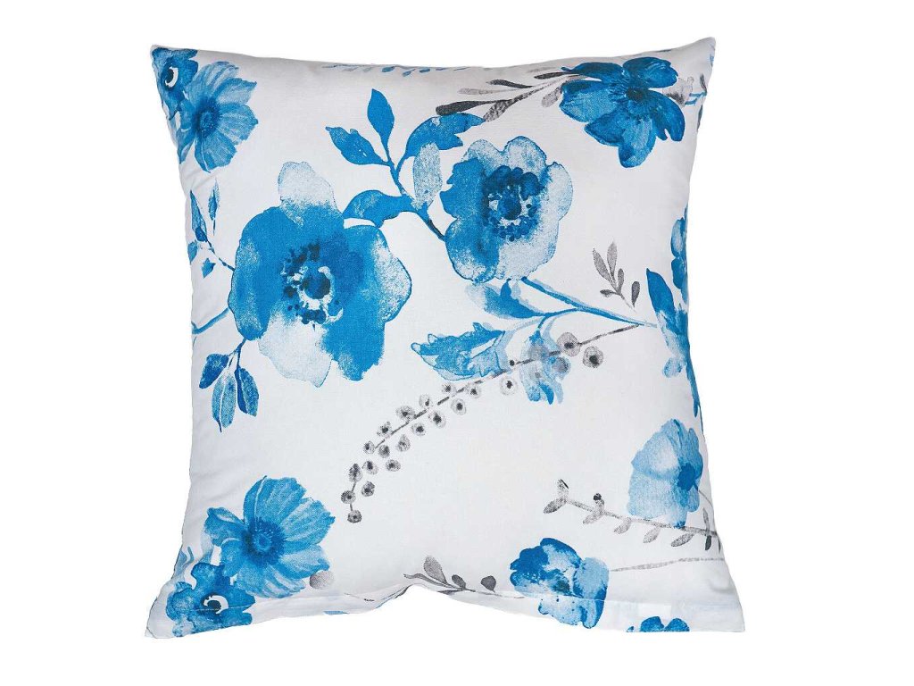 Dezén: Kvítí modré na bílém.