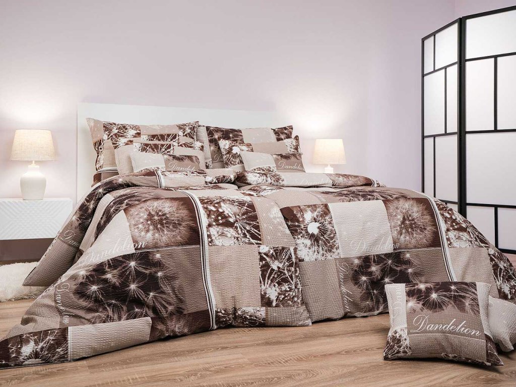 Povlečení krep Pampelišky 3D hnědé 140x240, 70x90 cm
