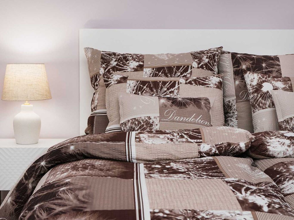 Povlečení krep Pampelišky 3D hnědé 240x220, 2x70x90 cm