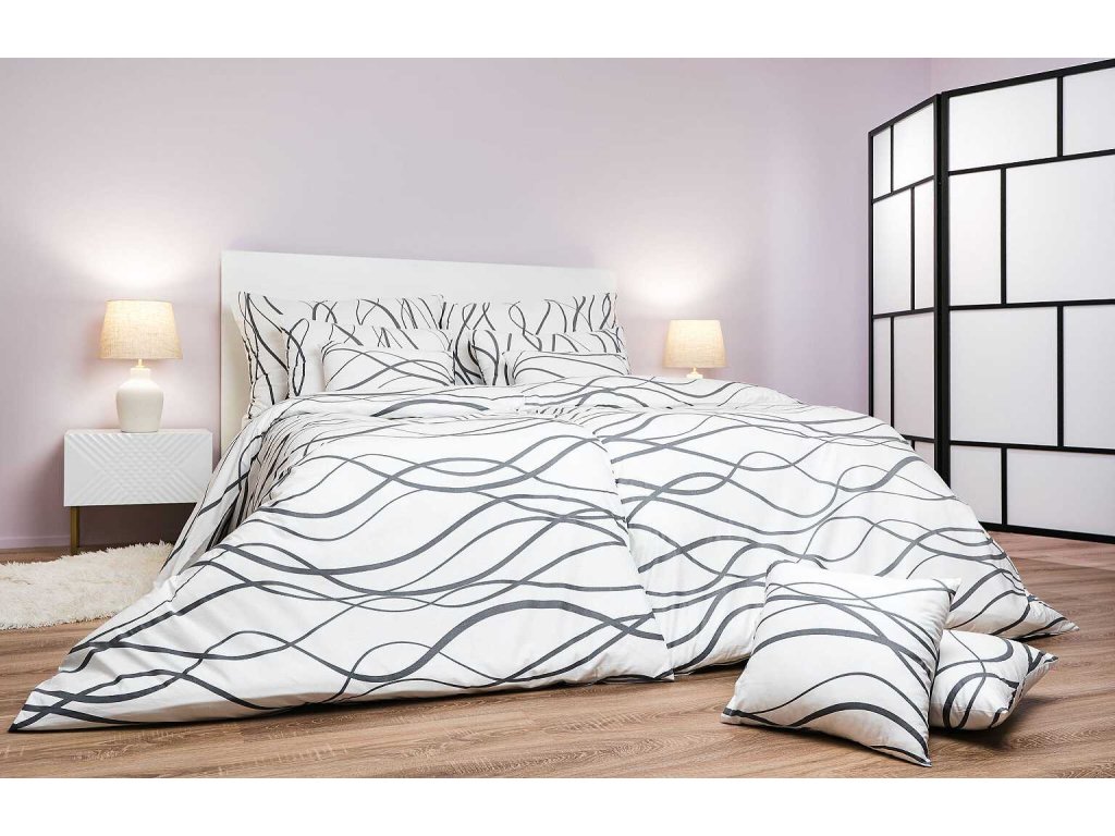 Povlečení krep Vlny tmavě šedé na bílém 240x220, 2x70x90 cm