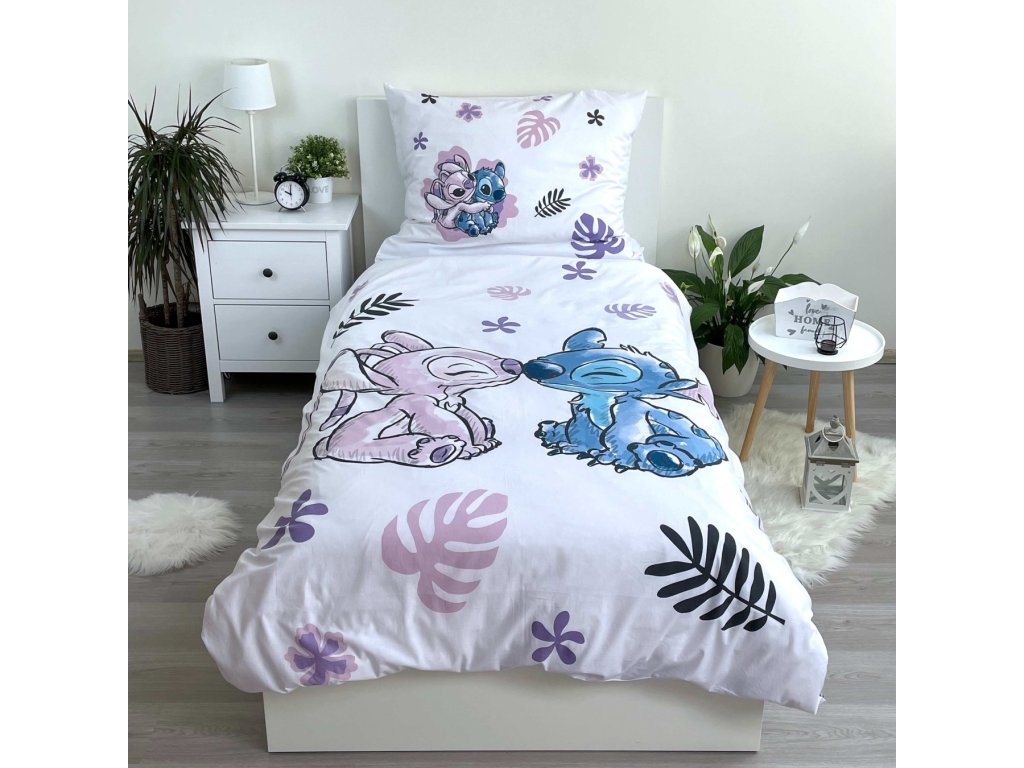 Vstupte do kouzelného světa snů s povlečením Lilo a Stitch White! Tento nádherný design přináší animované postavy na bílém pozadí s listy a květinami, které rozzáří každý dětský pokoj. Na přikrývce jsou postavy Angel a Stitch, které dodávají povlečení pozitivní atmosféru.