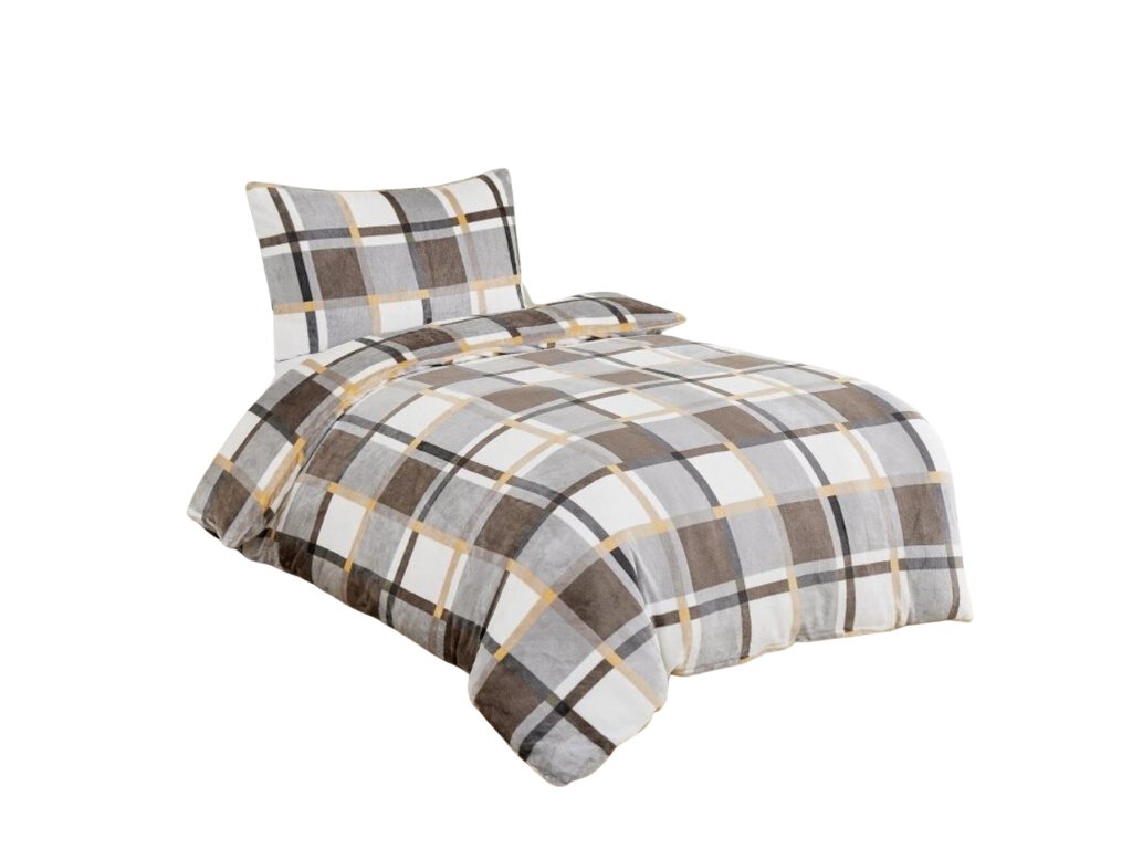 Povlečení mikroflanel Káro šedobíložluté 140x200, 70x90 cm