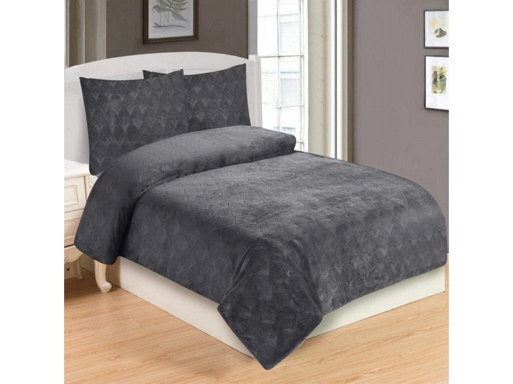 Povlečení Mikroflanel struktura Listy tmavě šedé