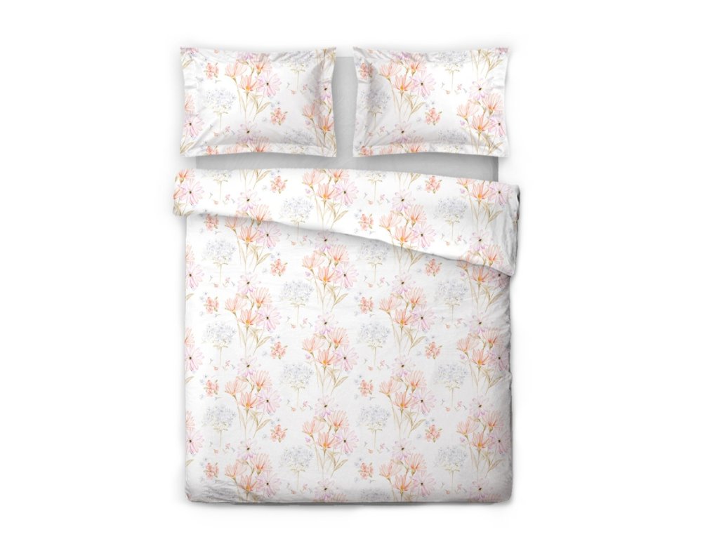 Povlečení Mikroflanel Svěží ráno značky SLEEP WELL® přináší do ložnice svěžest, jemnost a pohodlí. Pastelové květy v odstínech růžové, oranžové a bílé na světlém podkladu vytvářejí lehký a elegantní vzhled.