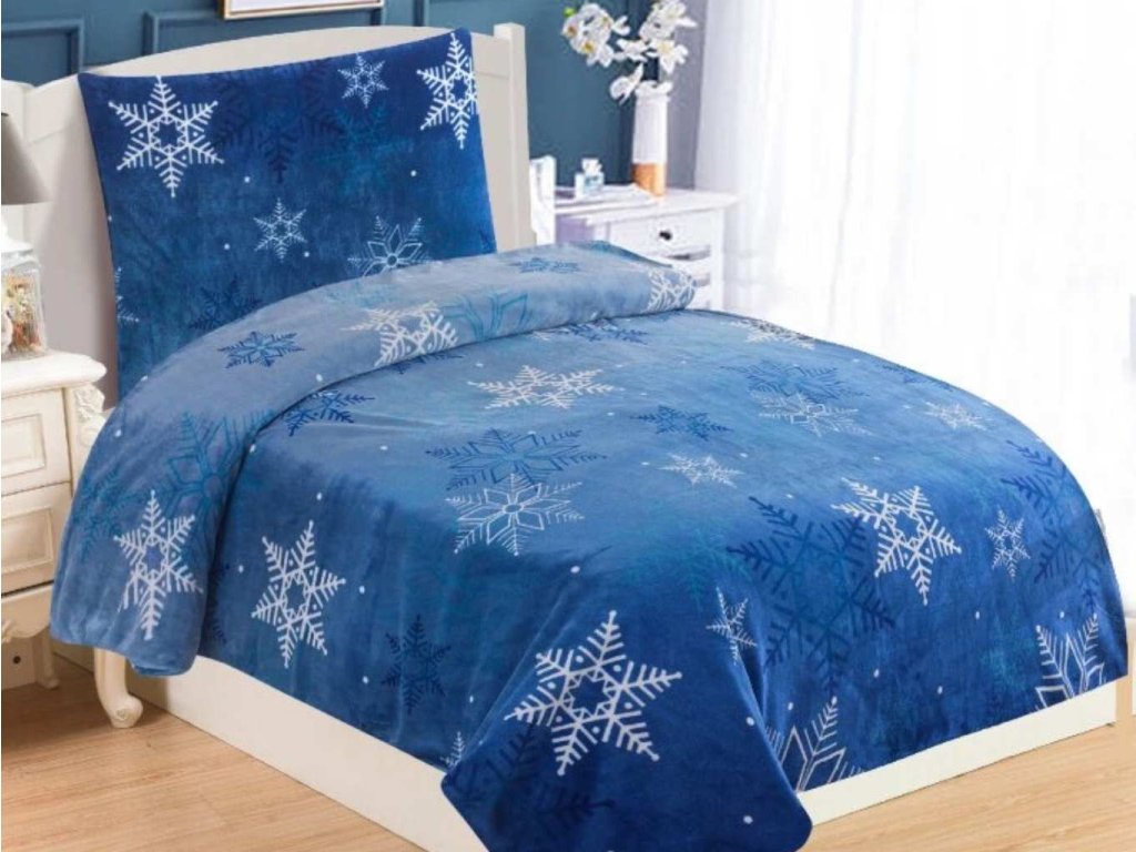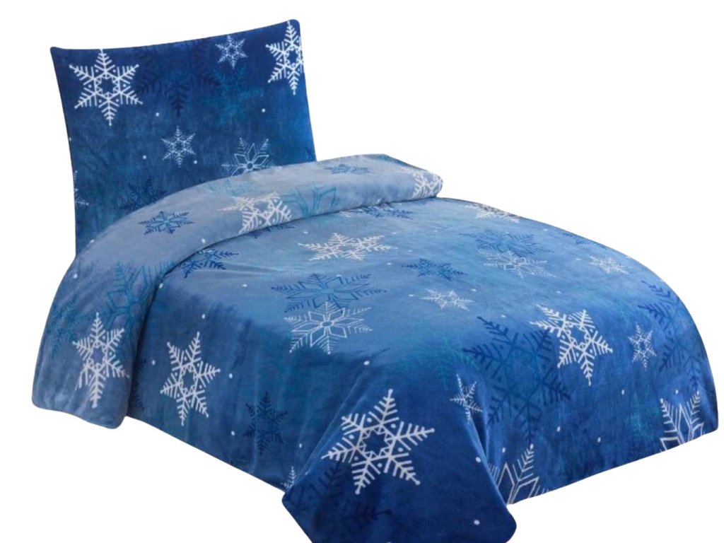 Ideální dárek pro zimní období – povlečení Mikroflanel Vločka modrá zahřeje, potěší a dodá ložnici kouzelnou zimní náladu!