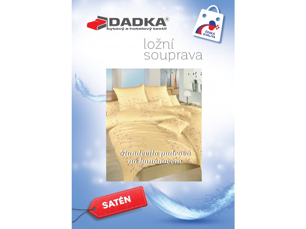 POZOR : Nejedná se o 100% polyester - satén, který klouže, chladí, elektrizuje a zatrhává se!!! Exluzivní dezén z dílny výrobce Dadka Vracov. Kvalita výrobku je potvrzena zdravotním atestem Textilního zkušebního ústavu Brno, jakož i certifikátem QZ - Zaručená kvalita, společně se značkou Česká kvalita, která zaručuje stálost barev, zároveň garantuje absenci jakýchkoliv zdraví nebezpečných látek a zdravotní nezávadnost pro dospělé i pro děti do 3 let.