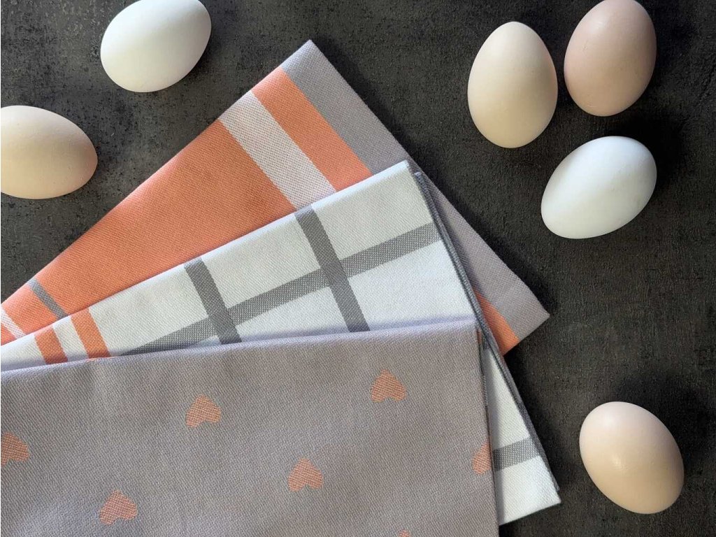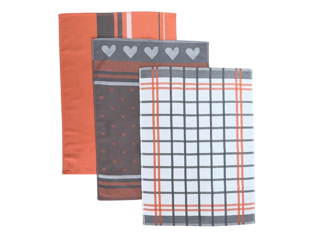 Utěrka Extra savá 50x70 cm Srdíčka losos/šedá 3 ks
