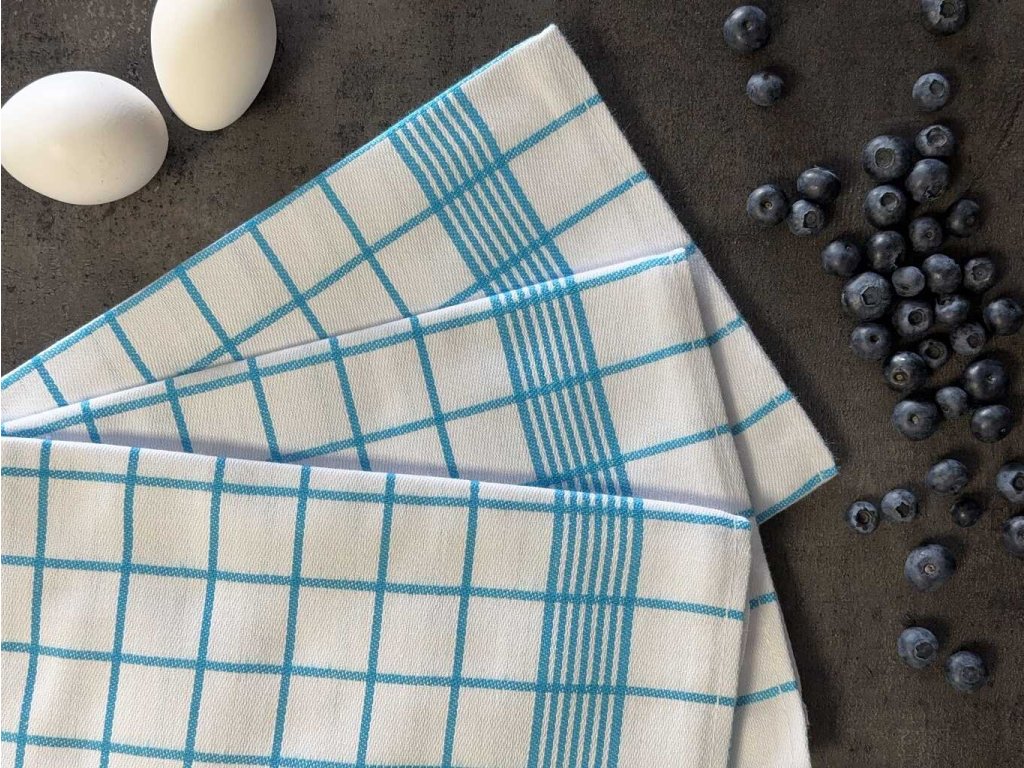 Utěrka Negativ Egyptská bavlna 50x70 cm bílá/tyrkys 3 ks