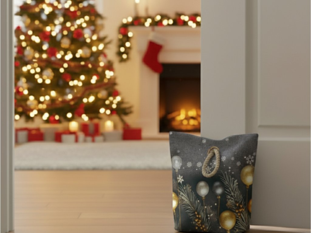 Stylová a praktická dekorace pro zimní období. Tato vánoční zarážka do dveří s motivem jehličí a baněk nejen zkrášlí váš interiér, ale zároveň zabrání průvanu. Skvělý doplněk pro sváteční atmosféru domova.